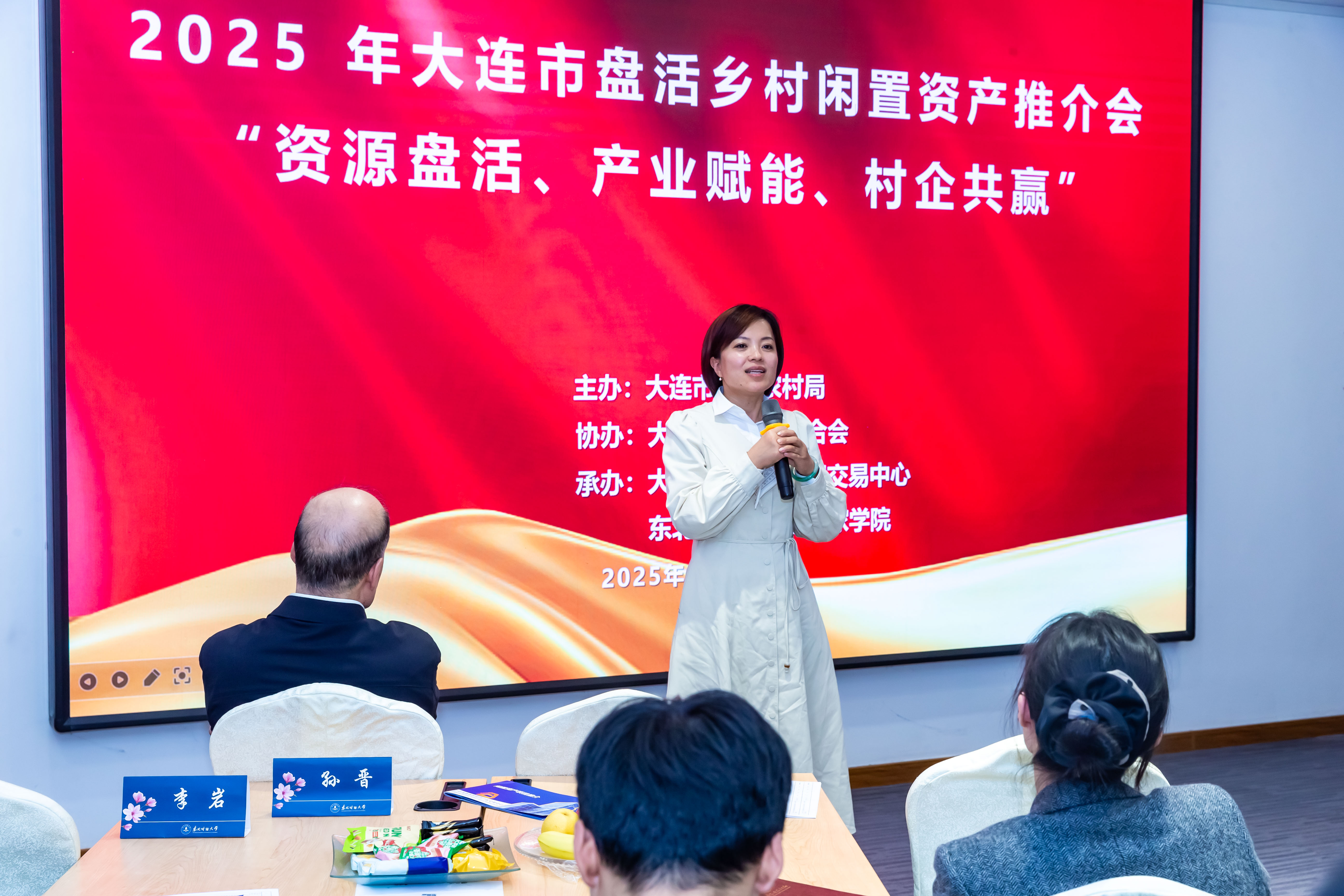 此次盘活乡村闲置资产推介会由大连市农业农村局主办,大连市工商业联合会协办、大连农村综合产权交易中心、东北财经大学企业家学院承办。旨在为深化农村集体产权制度改革,推动闲置资产与市场资本高效对接,现场有30余项优质乡村闲置资产受推介,主办方准备了包括文旅类、房产类、资产运营类总计300余个乡村闲置资产项目。
