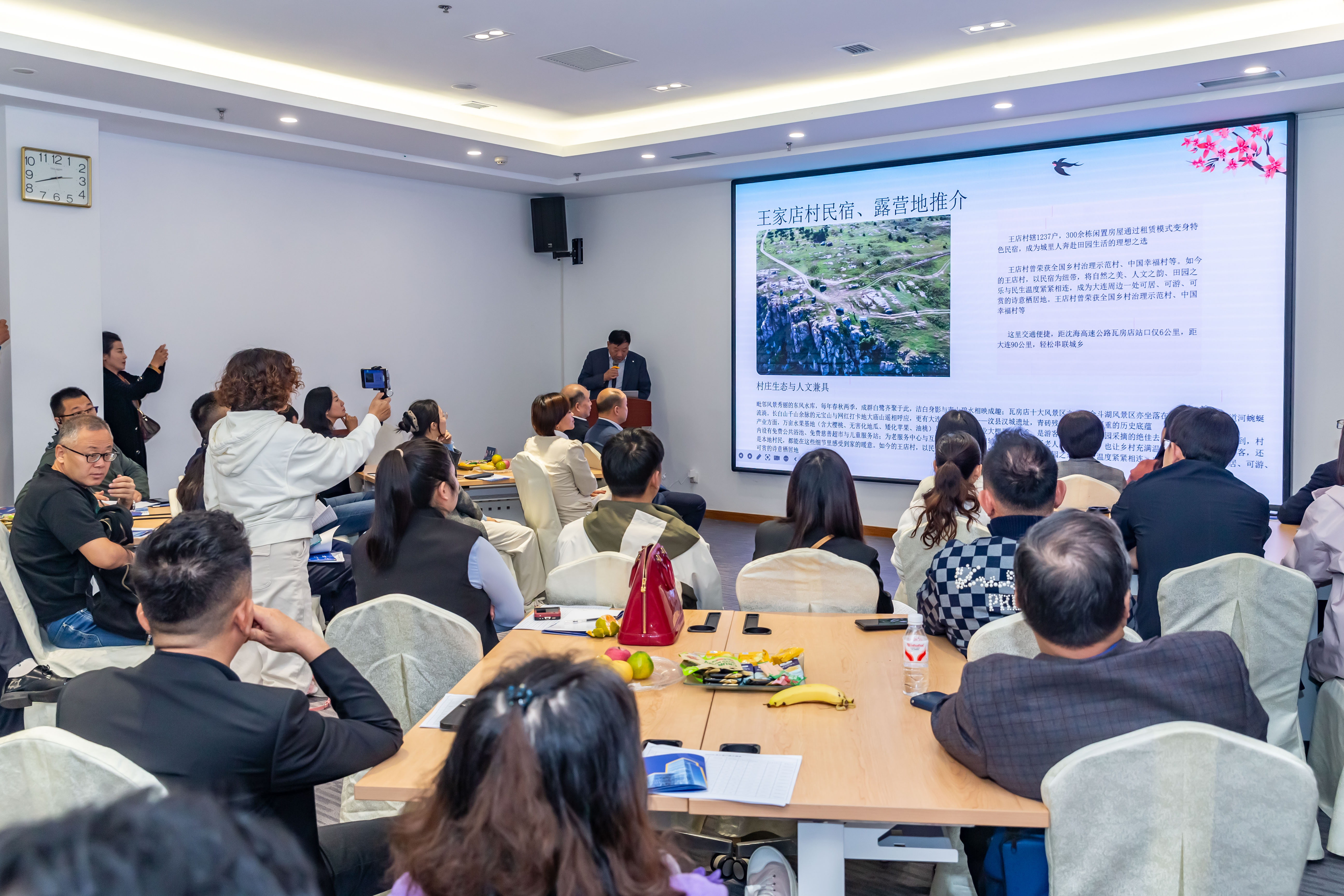 “瓦房店市王店村有300栋闲置民宅要盘活,我们想把城里人引到王店村居住,这里地理位置好,靠近东风水库,处于大连1小时城市生活圈;基础设施完善,还有大庙山、大平山、元宝山等景观……”10月17日下午,在2025年大连市盘活乡村闲置资产推介会上,瓦房店市王店村党总支书记于晓东向在座的29位企业家们做推介。